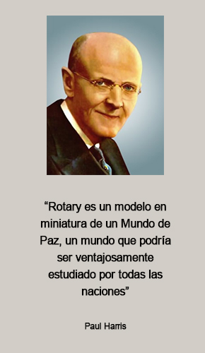 Rotary, primera organización mundial de clubes de servicio, dio comienzo a sus actividades con la formación del Club Rotario de Chicago, Illinois, EE.UU., el 23 de febrero de 1905. Dicho club fue fundado por el joven abogado Paul P. Harris y tres de sus amigos. Paul Harris intentaba recrear el espíritu de amistad habitual entre las personas de negocios del pueblo pequeño en el cual había crecido